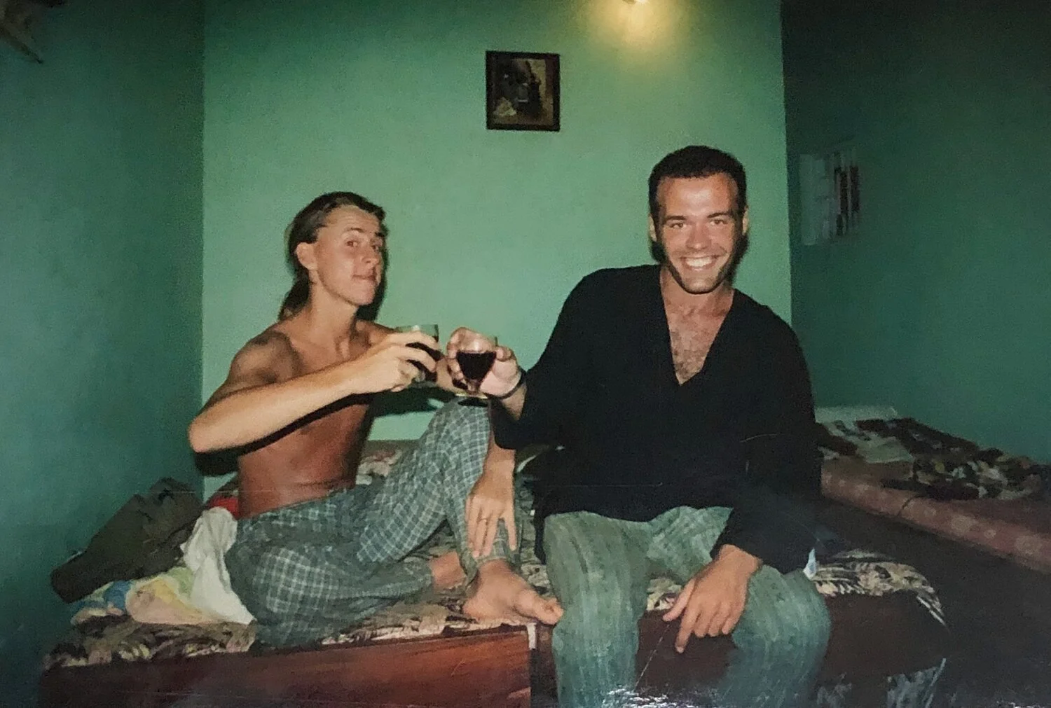 Mike & I in 1995 enjoying a little glass of something , I think wine! Or was it coke, not too sure now. Our last night of the trip before heading back to the UK. The blanket on the bed behind me to the right I still have and when I travel it comes with me to this day. Bought from a market in New Mexico! Certainly certain things that you own hang around for most of your life ( unless your wife finds them and does a clean out! )